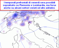 Nel corso di venerdì l’ondulazione del getto che si accompagnerà al nuovo veloce passaggio temporalesco previsto, sarà ormai giunto in prossimità della Alpi occidentali. Dai settori alpini piemontesi dei nuovi temporali si innescheranno dirigendosi verso la val Padana durante il pomeriggio-sera. Una prima passata temporalesca è attesa quindi su alcune regioni del nord-ovest già venerdì sera.