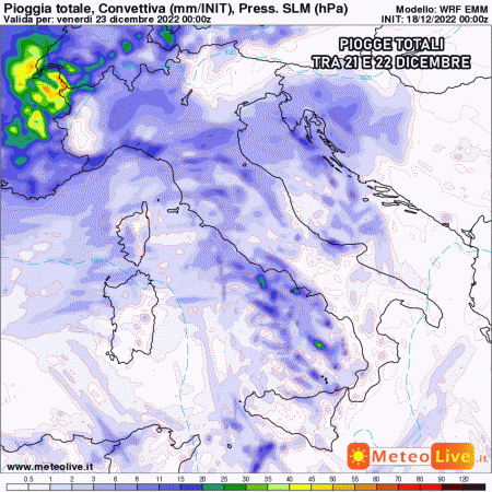 Giovedì 22 rapido miglioramento al nord, mentre avremo piogge sparse sul medio-basso Tirreno e al centro Italia. Anche qui, però, il tempo migliorerà rapidamente grazie alla forte invadenza dell’anticiclone che sarà poi protagonista fino a Natale!