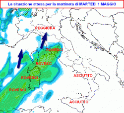 Un Primo Maggio un po’ dispettoso dal punto di vista atmosferico in Italia. Il sole non mancherà, ma su alcune regioni tenderà progressivamente ad imporsi la pioggia stante la formazione di una depressione mediterranea.