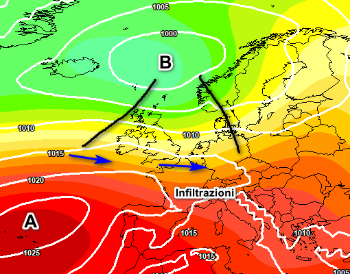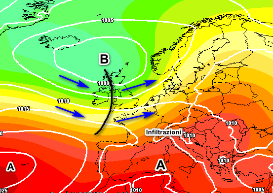 Anche il modello europeo opta per infiltrazioni di aria più fresca con possibili temporali su parte delle regioni settentrionali, associati a modesti cali termici. Su tutte le altre regioni ancora stabilità e tanto caldo.