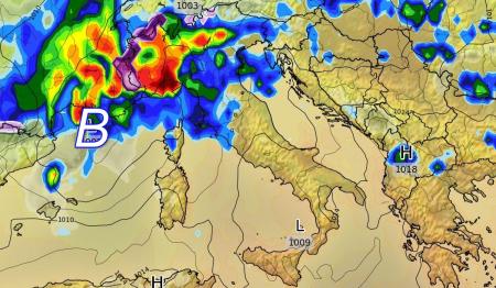 Ecco una stima delle piogge previste sull’Italia dal modello americano per sabato primo maggio, quando sperimenteremo il passaggio di una perturbazione più organizzata delle altre, con elevata probabilità di pioggia specie sulle regioni del nord: