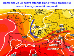 Tra sabato e domenica il balzo in avanti della depressione col proprio cuore più freddo ed instabile dritto dritto verso il nostro Paese. I temporali guadagneranno nella notte tra sabato e domenica le regioni del centro, lunedì i fenomeni potranno estendersi anche al meridione. In questo frangente ci aspettiamo un rimescolamento più efficace della massa d’aria ed una chiusura affidata ad una circolazione di venti occidentali che potrebbero recare qualche mareggiata sui versanti tirrenici e la Sardegna.