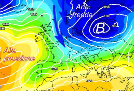 Sotto Natale una nuova ondulazione della corrente a getto porterà lo sviluppo di una saccatura più organizzata sull’Europa centrale ed orientale. Ne potrebbe conseguire lo sviluppo di una perturbazione associata a piogge soprattutto al centro ed al sud tra giovedì 24 (Vigilia) e venerdì 25 (Natale). Infine ci sarebbe spazio per una riduzione del quadro termico generale ad opera di venti più freddi settentrionali. Il transito dell’asse di saccatura sarebbe seguito dall’ingresso di aria fredda artico-marittima, con una riduzione sensibile del quadro termico generale ad iniziare dal nord già a partire dal giorno di Natale. Analisi in quota del modello europeo riferita a venerdì 25 dicembre: