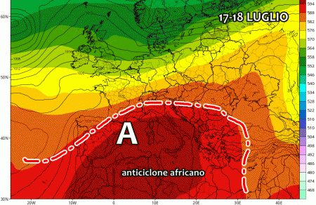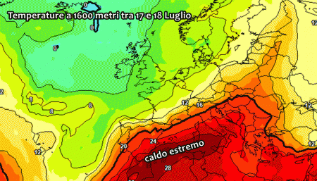 Anche l’avvio della prossima settimana rischia di proseguire sulla stessa scia. Anzi, pare che le temperature possano salire ancor di più. Tra 17 e 18 Luglio diventa sempre più probabile l’arrivo di un "fiume" d’aria calda sub-tropicale molto ben evidente anche dalle temperature previste a 1500-1600 metri circa. Troviamo valori vicini ai +28°C avvolgere le isole maggiori e intenzionate a compiere chilometri verso l’Italia peninsulare.