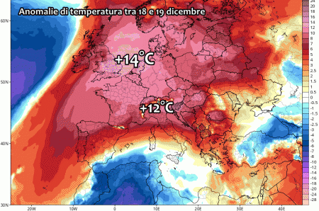 Davvero impressionanti le anomalie previste ad inizio settimana prossima su tutta l’Europa. Tra Gran Breagna, Francia e Germania spiccano temperature di almeno 14°C superiori alle medie, in alta quota. Situazione non molto diversa al nord Italia dove sulle Alpi si respirerà aria primaverile.