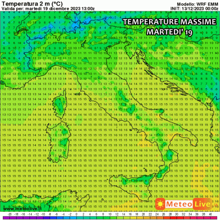 Le temperature massime previste martedì 19 non sono eccezionalmente alte, nonostante il forte campo di alta pressione. Il motivo è legato all’inversione termica indotta dall’alta pressione: farà più fresco al suolo e meno fresco invece in montagna.