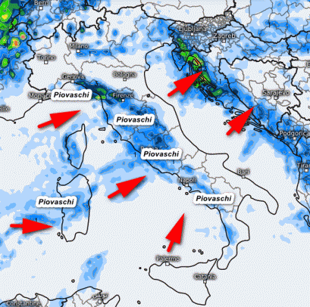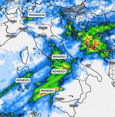 Inizio settimana con un po’ di MALTEMPO, non mancheranno PIOGGE; vediamo le aree coinvolte