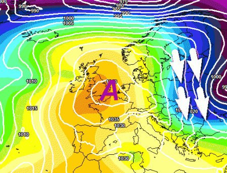 Alta pressione sul Regno Unito e discesa fredda sull’Europa orientale, con successivo coinvolgimento anche dell’Italia. Se questa tesi fosse corretta, l’inizio della settimana prossima vedrebbe un nuovo calo termico ed altre nevicate anche a bassa quota specie al centro e al sud.
