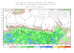 Prendendo in considerazione la parte di ICTZ che attraversa il continente africano da ovest verso est, possiamo osservare una piccola area in cui la linea di convergenza si trova nella media del periodo. Distinguiamo poi un settore centrale dove la zona di convergenza è posta più a nord della media, ed una terza zona più ad est che controbilancia il settore centrale risultando sottomedia.