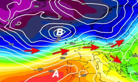 Quando i venti da ovest perdono forza e si entra in fase di NAO negativa, le perturbazioni entrano con maggiore veemenza verso le basse latitudini, anzi talvolta un’alta pressione sostituisce il ciclone d’Islanda e vortici depressionari importanti vagano nel Mediterraneo.