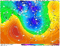 Nella mappa vediamo il vasto ciclone carico di aria fredda di origine polare sull’Europa centro-settentrionale, modello GFS.