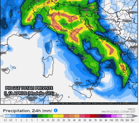 Nel caso in cui si realizzasse lo scenario proposto da GFS, gran parte d’Italia sarebbe bagnata dalle piogge, con accumuli localmente interessanti grazie all’arrivo di rovesci e temporali. Nordest e regioni centrali sarebbero quelle più coinvolte dalle piogge:
