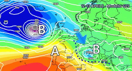 L’aggiornamento pomeridiano del modello americano GFS insiste in un’evoluzione meteo piuttosto interessante per la prossima settimana, in particolare tra 12 e 13 Aprile. Dopo una breve pausa attorno a Pasquetta, potremmo nuovamente fare i conti con piogge e temporali su tante regioni grazie ad una nuova perturbazione nord-atlantica.