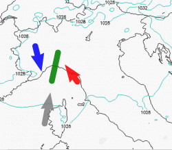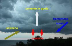 In queste immagini abbiamo scelto di mostrare in modo molto elementare quanto è accaduto, partendo dalla convergenza delle correnti sciroccali con quelle discendenti da nord come tramontana scura dall’Appennino e con il traino della corrente in quota portante da SW, ben marcata.