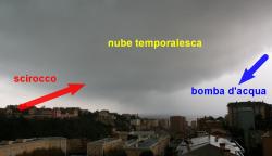 Le foto che vi mostriamo ricostruiscono anche il dettaglio con vista mare. Nella prima è presente una ricostruzione tecnica e la foto non è reale, ma semplicemente didattica, la seconda invece è stata fotografata da Antonio Tricarico e si nota la bomba d’acqua avanzare verso la città coadiuvata da un lato dallo Scirocco e dall’altro dalla Tramontana scura. Il resto è solo pianto e stridore di denti.