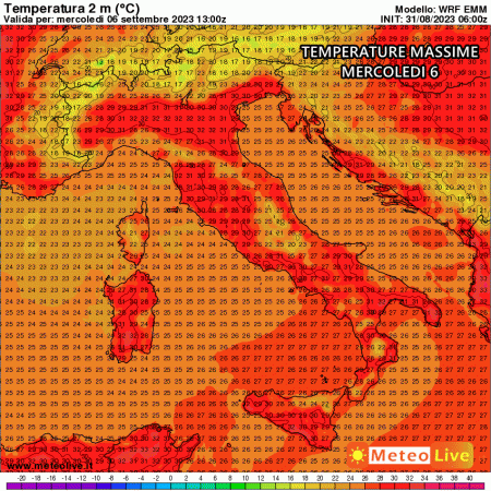 In Italia, fortunatamente, non dovremmo sperimentare queste pesanti anomalie nel periodo in questione. Sarà presente un’area di alta pressione, soprattutto al Nord, sul medio-alto Tirreno e in Sardegna, caratterizzata da elevati geopotenziali, ma le temperature non raggiungeranno livelli estremamente elevati. Le massime oscilleranno indicativamente tra i 28 e i 33°C in molte località del settentrione, del versante tirrenico e della Sardegna, mentre sul medio-basso Adriatico e nel Sud potremmo avere temperature ancor più contenute, attorno ai 25-29°C.