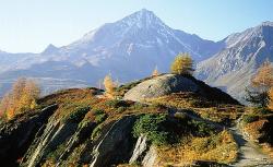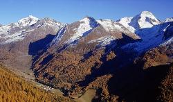 I contrasti tra il bianco dei ghiacciai, i primi ingiallimenti della vegetazione e il verde ancora