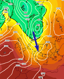 Osservando la carta a 500 hPa delle ore 00 del 17 luglio 1970 è evidente la configurazione barica di quel giorno: l’anticiclone delle Azzorre che due giorni prima estendeva un promontorio verso l’Europa Centrale presenta ora due massimi: uno in pieno Atlantico e uno a Sud-Ovest dell’Irlanda. Sul Portogallo e Spagna occidentale la cupola anticiclonica è tipicamente subtropicale perché ben strutturata in quota, ma il promontorio anticiclonico si protende ora dalle Isole Britanniche alla Norvegia settentrionale.