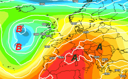 Notate l’affondo depressionario in Atlantico e la risposta africana sulla nostra Penisola con geopotenziali e temperature paragonabili al mese di giugno.