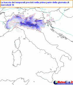 Secondo le ultimissime elaborazioni il passaggio temporalesco viene confermato con le seguenti modalità: martedì 13 bello ma con prime nubi che si affacciano nel corso della giornata sulla Sardegna. Prima di sera peggiora su centro-est Alpi con tendenza a temporali, specie sul Triveneto.