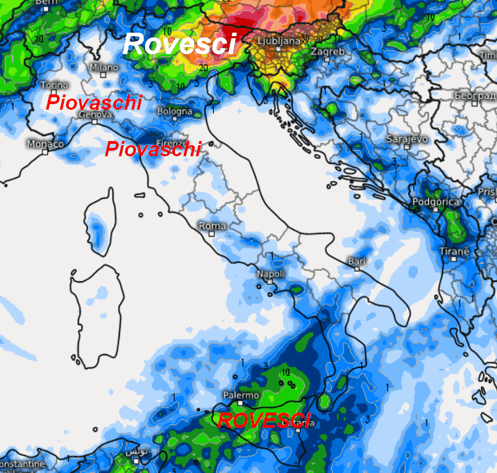 Questa invece è la sommatoria delle precipitazioni attese in Italia nell’arco della giornata di mercoledi 17 aprile: