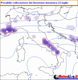 Il salto che compirà l’aria fresca a seguito del fronte richiamerà venti di Libeccio che potranno agevolare qualche spunto temporalesco di richiamo anche sulle zone interne di Toscana, Umbria e Lazio nella giornata di domenica 22. Anche in questo caso la fenomenologia suddetta potrà sfuggire localmente verso le zone adiacenti e interessare a macchia di leopardo anche le zone appenniniche del meridione, in particolare al confine tra Campania, Molise e Basilicata.