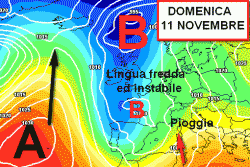 Ecco l’analisi prevista dal modello americano per il secondo fine settimana del mese di novembre. La giornata in questione è quella di domenica 11.