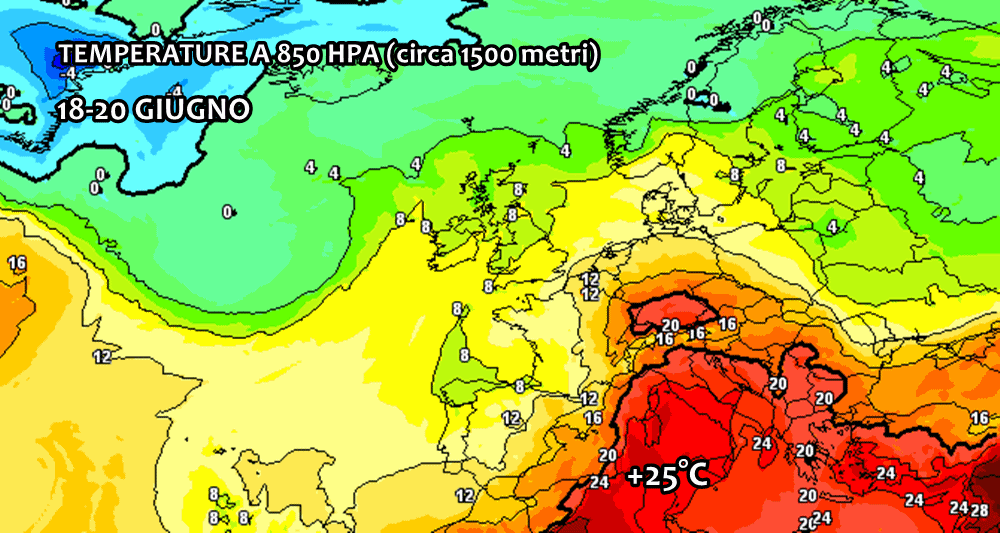 La temibile “+25°C” a 1500 metri, ecco dove transiterà