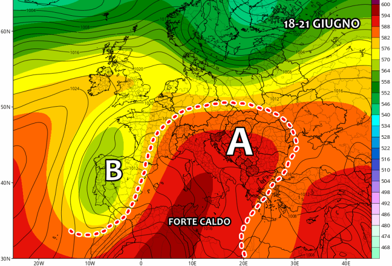 Il promontorio sub-tropicale, sostenuto da una chiara configurazione ad omega, avvolgerà tutta Italia almeno fino a venerdì, garantendo tempo stabile e soprattutto un severo aumento delle temperature e dell’umidità. Il caldo diverrà particolarmente intenso sulle regioni del centro-sud e le isole maggiori, ma è ormai confermato che l’aria calda (e umida) affluirà con vigore anche al nord Italia tra mercoledì, giovedì e venerdì.