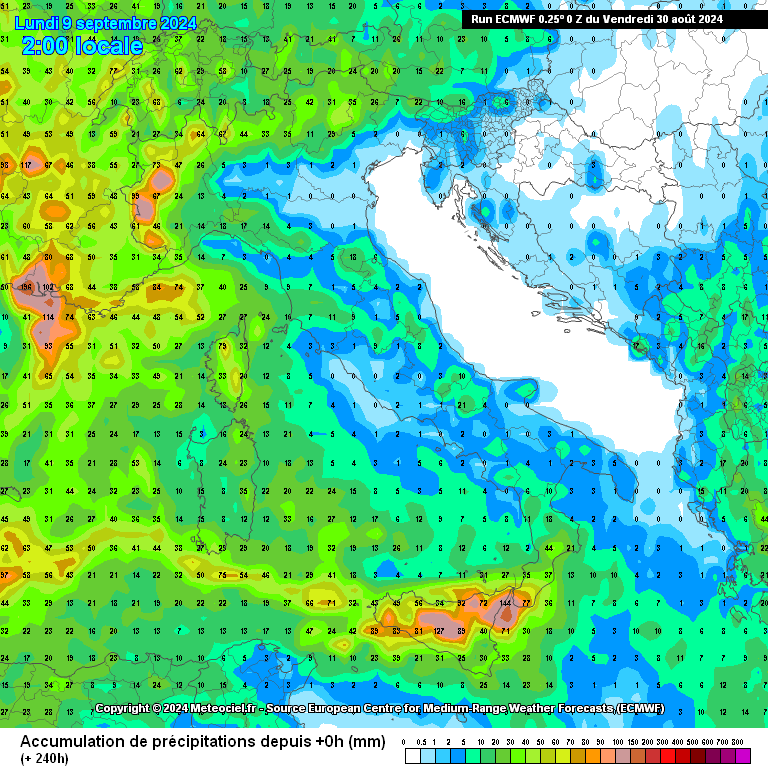 I numeri che vedete sulla mappa sono i millimetri di pioggia previsti. Si tratta di stime puramente indicative che non devono essere prese come oro colato.