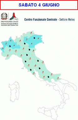 Le previsioni della protezione civile per SABATO 4 GIUGNO