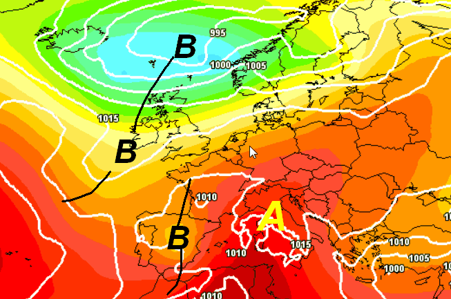 Per ciò che concerne il settentrione, la sopracitata goccia fredda iberica verrà agganciata dal flusso occidentale e trascinata verso levante insieme alla coda di una perturbazione proveniente da ovest. Tutto ciò determinerà una nuova recrudescenza dei temporali sull’alta Italia nel fine settimana, segnatamente nel pomeriggio-sera di sabato 29 giugno.