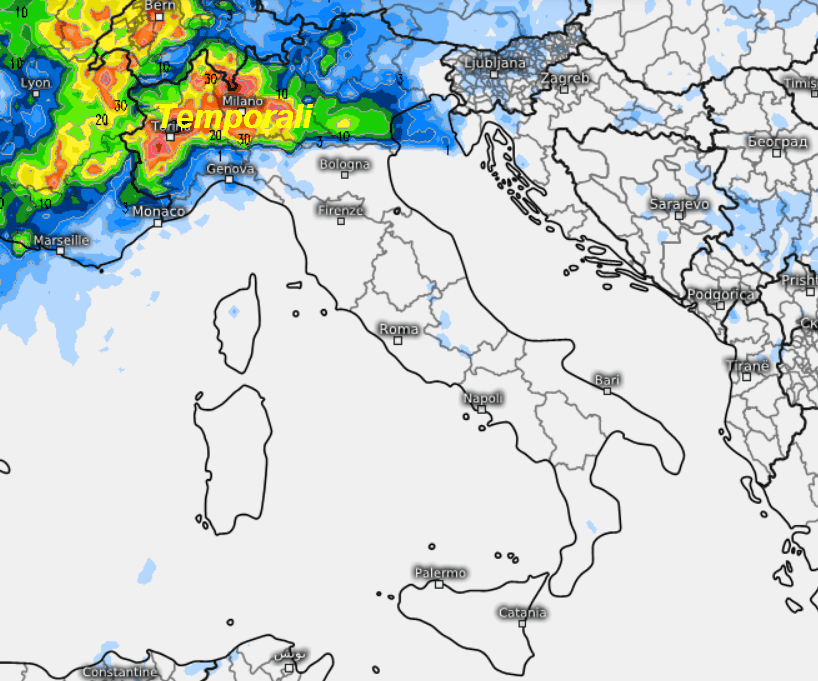 Torneranno i temporali pomeridiano-serali a nord del Po, segnatamente su Piemonte, Lombardia e Triveneto. Sul resto del nord fenomeni molto scarsi se non del tutto assenti. Al centro e al sud invece nessun fenomeno, con il tempo che dovrebbe mantenersi stabile.