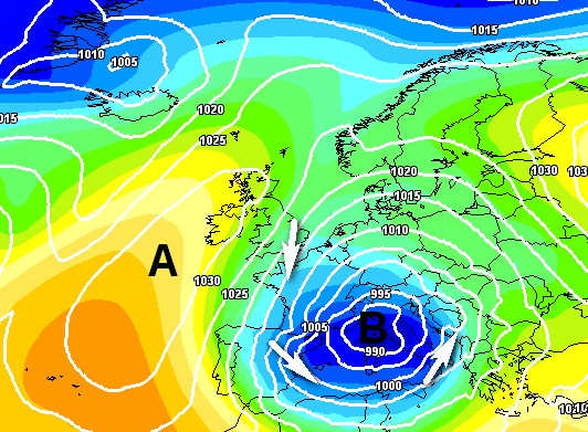 Qui ci sono varie opzioni da classica tempesta di fine inverno, che vi mostriamo per farvi comprendere come gli scambi meridiani di calore possano ancora compiere il “miracolo” di far vivere episodi di maltempo invernale: