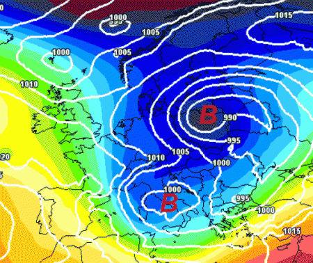 Sarà un lunedi freddo, ventoso ed instabile per le regioni centrali e meridionali italiane. Ecco la mappa sinottica attesa per le ore centrali di lunedi 29 novembre: