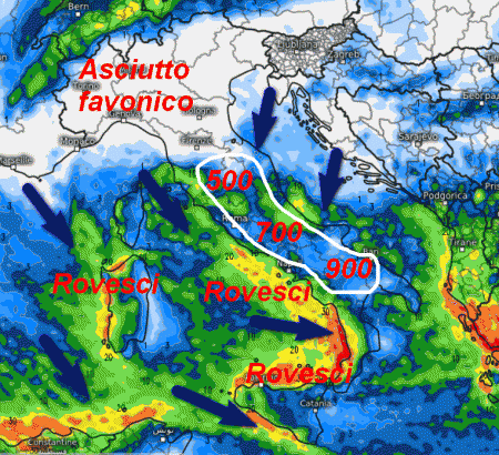 I fenomeni inizieranno a manifestarsi dalla media Toscana verso sud. Previsti rovesci e temporali anche accompagnati da grandine e colpi di vento specie su Sardegna, bassa Toscana, Lazio, Campania, Calabria Tirrenica e Sicilia settentrionale.