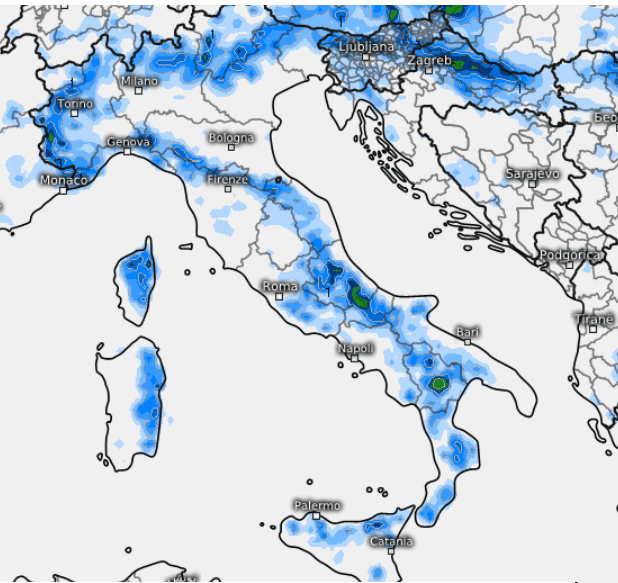 Soleggiato al mattino, temporalesco nel pomeriggio su Alpi, Prealpi e dorsale appenninica, comprese le aree interne di Sicilia e Sardegna, ma con basso rischio di sconfinamenti in costa.