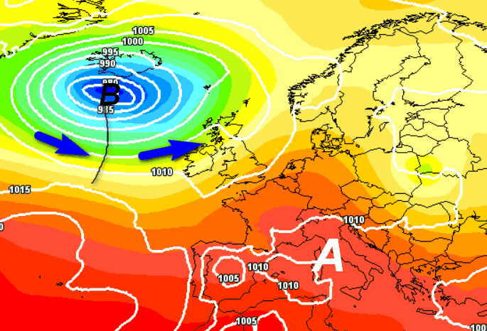Le correnti oceaniche più fresche ed instabili seguiteranno ad interessare il Regno Unito e la Scandinavia, mentre sul Mediterraneo permarrà un plateaux di alta pressione che garantirà condizioni complessivamente stabili e calde.