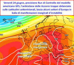 Tuttavia proprio l’espansione dell’alta pressione su latitudini così settentrionali rispetto alla media, potrebbe aprire qualche interrogativo in più circa l’effettiva "tenacità" del periodo di stabilità atmosferica previsto sul nostro Paese nella terza decade di giugno. Nonostante il periodo ormai avanzato, l’obiettivo principale del nostro anticiclone non sarebbe infatti il bacino del Mediterraneo quanto piuttosto i settori centrali d’Europa, lungo un asse passante dalla Penisola Iberica, Regno Unito meridionale, Mitteleurope sino a coinvolgere parte dell‘est europeo.