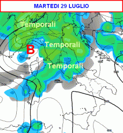 Confermato il peggioramento al centro-nord per l'inizio della settimana prossima. La giornata peggiore sarà martedì 29 luglio.