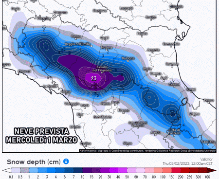 Insomma mercoledì 1 marzo potremmo assistere ad una nevicata (con bassa possibilità di accumuli) sulle principali città emiliane come Bologna, Modena, Reggio Emilia e Parma, Forlì, Imola, Cesena. Le possibilità più alte sono presenti fra la tarda mattina e il pomeriggio.