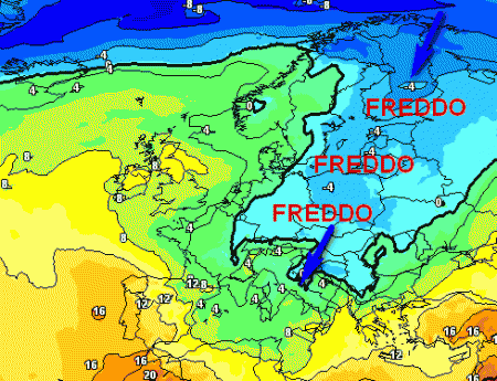 Sull’Europa orientale sarà inverno, con isoterme attorno a -4° alla medesima quota. Farà molto freddo per la stagione anche in Italia, con l’isoterma 0° a 1500 metri che potrebbe entrare lungo le regioni adriatiche.