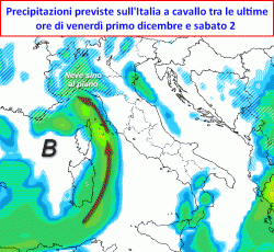 Secondo gli aggiornamenti attuali, venerdì primo dicembre le prime precipitazioni si manifesterebbero proprio a cavallo tra l’alta Toscana e la Liguria durante le ore mattutine, subendo poi una temporanea attenuazione nel pomeriggio. Una prima spolverata di neve si farà vedere a quote assai modeste sull’Appennino Ligure levantino e sull’Appennino Tosco-Emiliano.