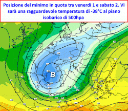 Ormai preannunciata con alcuni giorni di anticipo, aria molto fredda di origine artica è pronta a gettarsi a capofitto sul Mediterraneo centro-occidentale, attraverso il Golfo del Leone, dando luogo alla formazione di una ciclogenesi sui mari prospicenti l’Italia. Il quantitativo d’aria fredda previsto affluire alle quote superiori sarà davvero degno di considerazione e risulterà determinante al fine di predisporre l’atmosfera a generare episodi di instabilità ed infine la formazione di un vero e proprio gorgo di nuvolosità attorno ad un minimo di bassa pressione che, partendo dalle regioni alto tirreniche, tenderebbe poi a sprofondare verso le regioni di Mezzogiorno e l’Egeo.