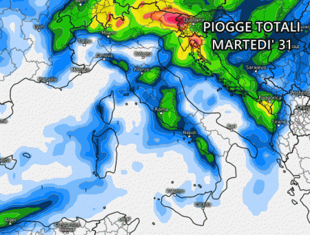 Il nuovo fronte caldo, proveniente da ovest, raggiungerà l’Italia nelle prossime ore, precisamente nella giornata di domenica, e porterà i primi fenomeni localmente intensi, in particolare nell’alta Toscana, in Liguria e sulle Alpi centrali, dove potremmo anche assistere a qualche isolato nubifragio. Questo sistema frontale si estenderà su buona parte del centro e del Nord all’inizio della settimana, portando un netto peggioramento con piogge diffuse e accumuli decisamente consistenti, con valori che potrebbero superare i 50-60 mm in diverse località tra Liguria, Toscana, Appennino Emiliano, Alto Piemonte, Lombardia, Trentino Alto Adige e Veneto.