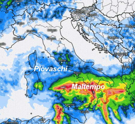 Maltempo, con temporali anche forti tra il Cilento, la Calabria, la Lucania e il Golfo di Taranto. Fenomeni probabili anche sulla Sicilia e il Salento