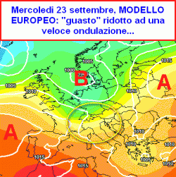 Il modello europeo (seconda cartina lato), riduce ulteriormente il carico perturbato sull’Italia.