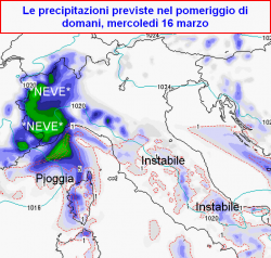 GIOVEDI’ 17 E VENERDI’ 18: nelle giornate successive, l’isolamento della "goccia" d’aria fredda continentale sull’ovest Europa, determinerà sul nostro Paese un generale addolcimento delle temperature che si manifesterà anche sulle regioni settentrionali. Episodi sparsi di instabilità ed annuvolamenti anche intensi caratterizzeranno la giornata di giovedì 17, mentre delle schiarite più ampie, associate ad un ulteriore miglioramento delle condizioni atmosferiche è atteso venerdì 18 marzo.