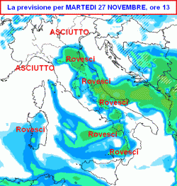 La seconda mappa mostra la situazione attesa in Italia nelle ore centrali di martedi 27 novembre.