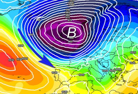 La previsione del modello europeo riferita a domenica 27 dicembre, mostra un profondo vortice di bassa pressione conquistare l’Europa: